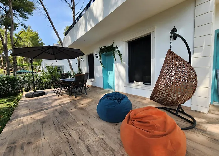 Situada a 25 minutos a pé de Plazhi i Golemit, a Cozy Pinetrees Beach House Vila à beira-mar disponibiliza aos hóspedes área para piquenique e jardim. Localizada a 10 minutos de carro da Kodra e Robit, esta pousada dispõe de terraço com vistas para o jardim.